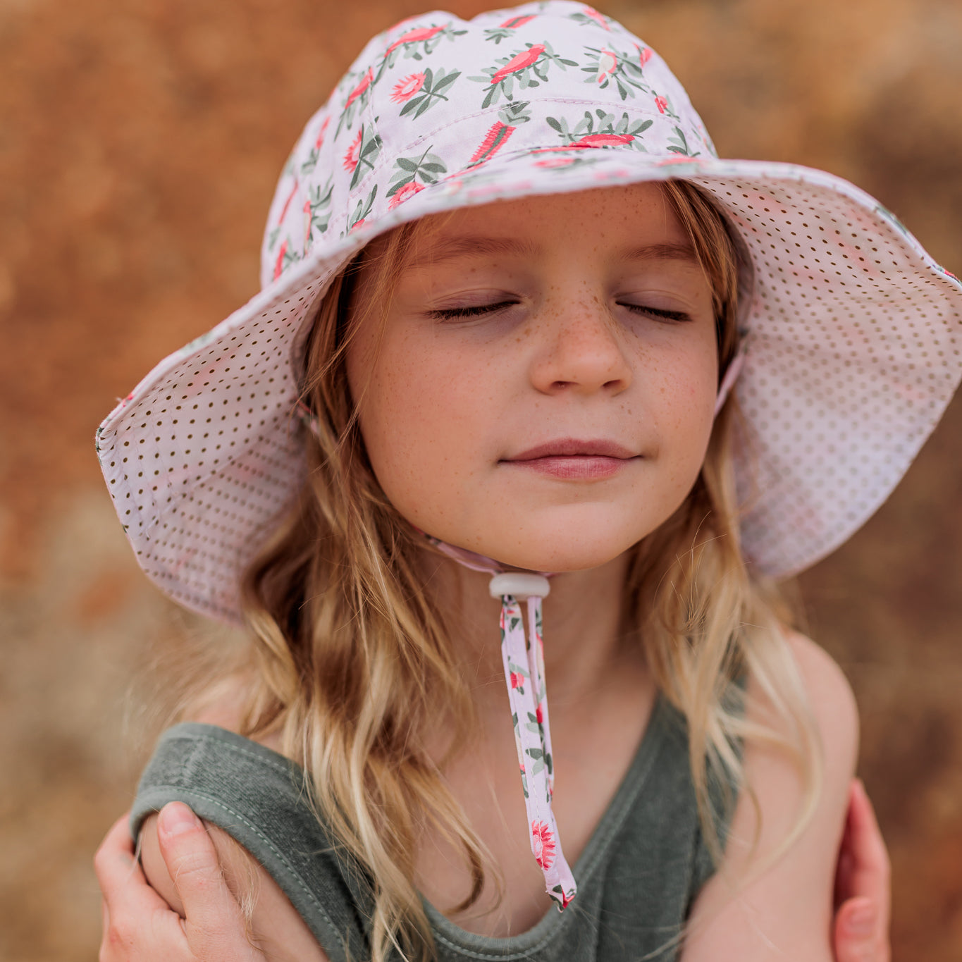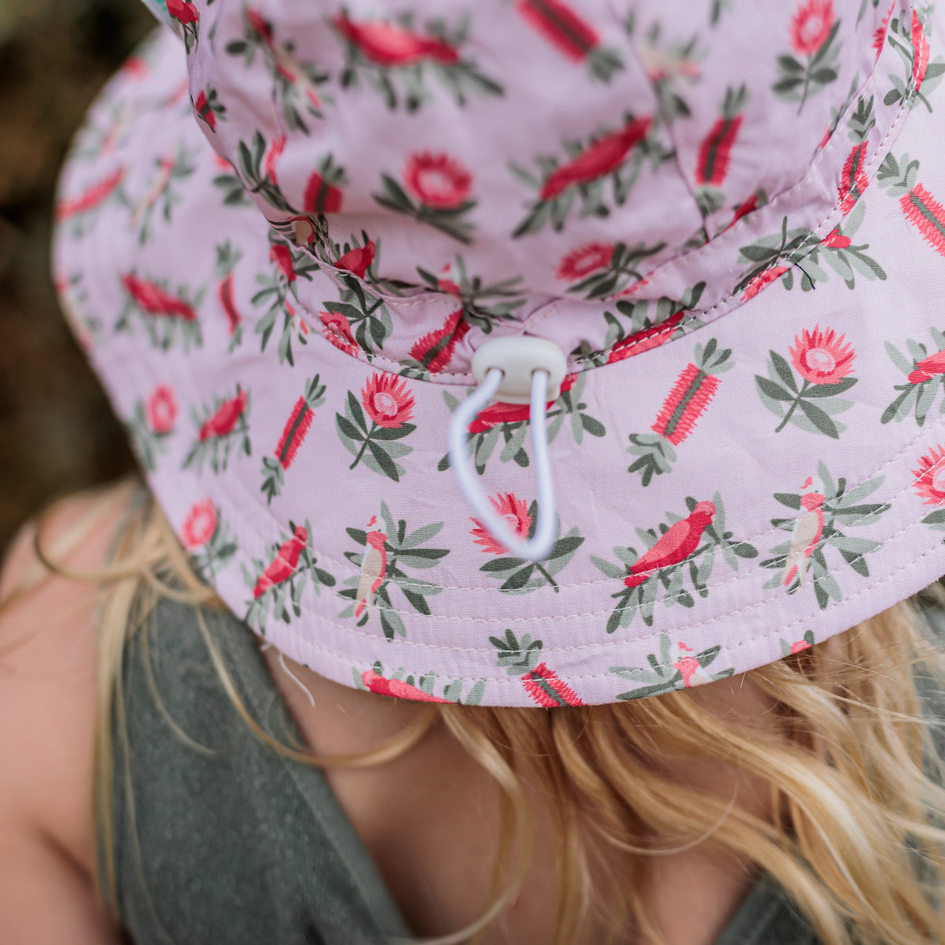 The Floppy hat features a Banksia and Galah print designed by Jacinta Weir from Two Little Ducklings.