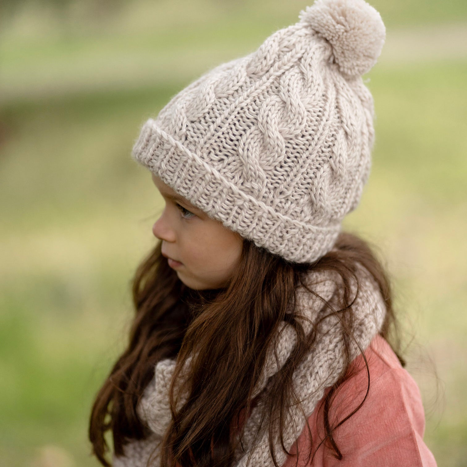 A super soft wool blend knit beanie, made with a cable knit stitch that is lovely and stretchy and extremely comfortable when worn.