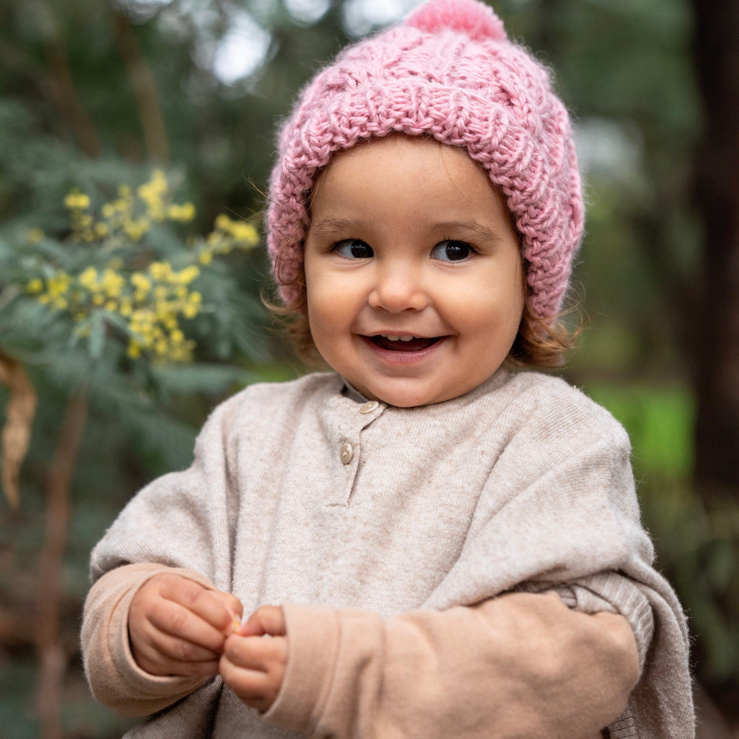 A super soft wool blend knit beanie, made with a cable knit stitch that is lovely and stretchy and extremely comfortable when worn.