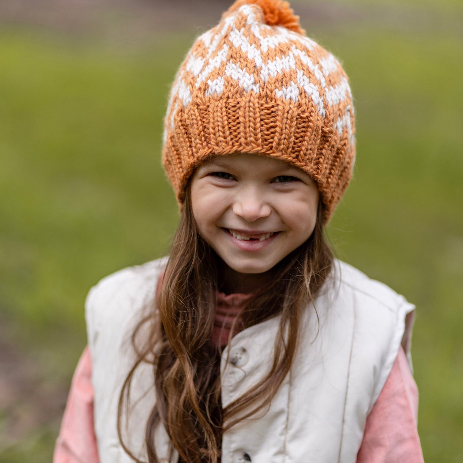 This super soft wool blend knit beanie with a chevron stripe pattern and a comfortable and stretchy 2x2 ribbing at the face.