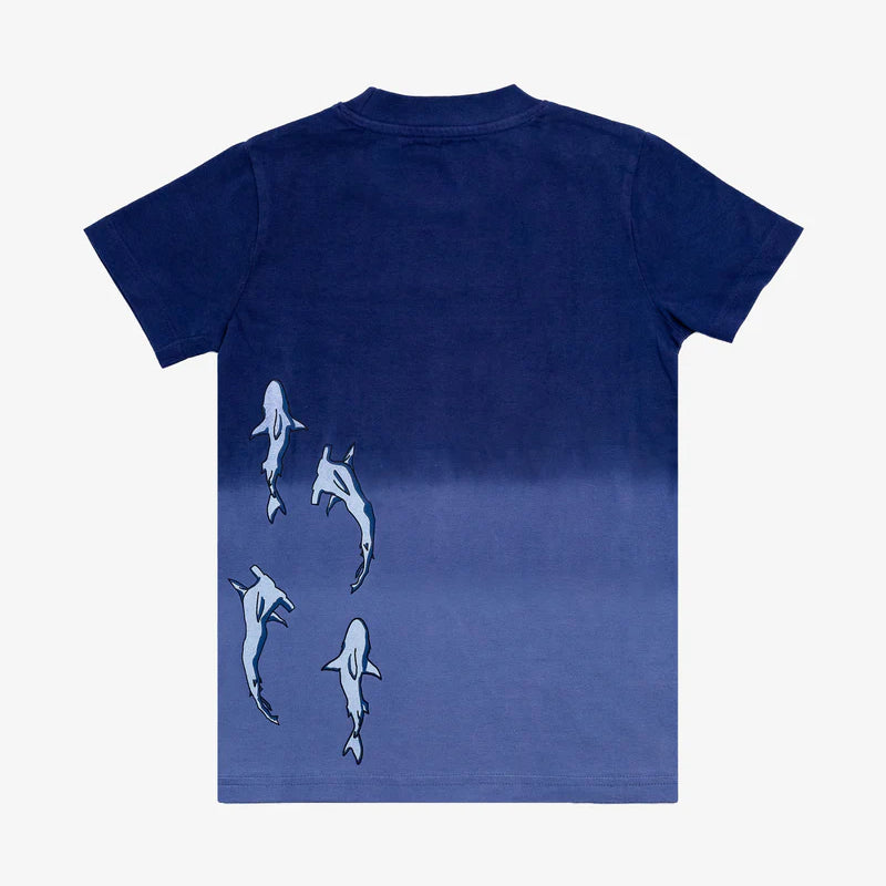 The Band of Boys Blue Dip-Dye Shark tee is cooler than cool – with a shiver of sharks on deep blue dip-dye tones.