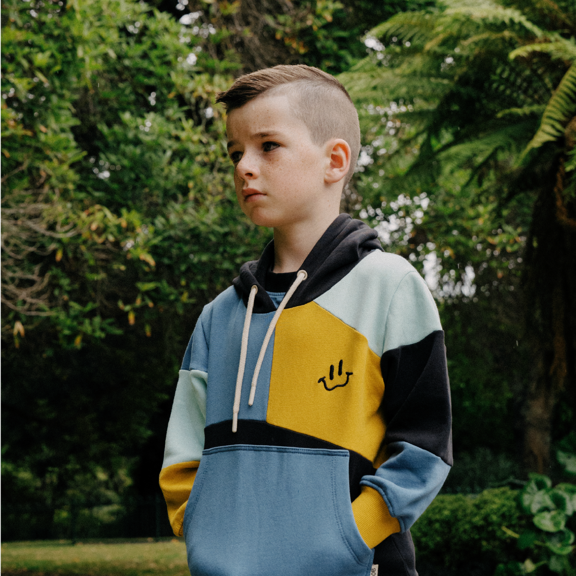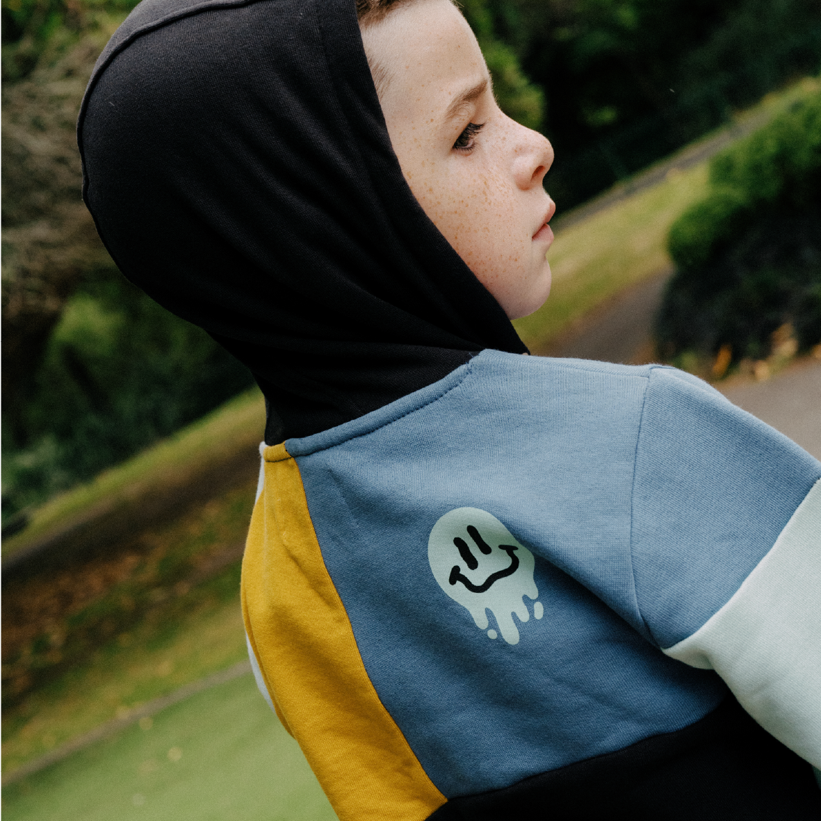 The Colour Block Harlequin Hood by Band of Boys is a stand-out piece in this season’s hottest colour combination. Wear it with the matching track pants or mix and match with our relaxed black shorts or BOB track pants for effortless style and versatility this season.