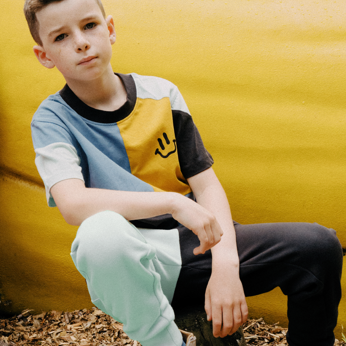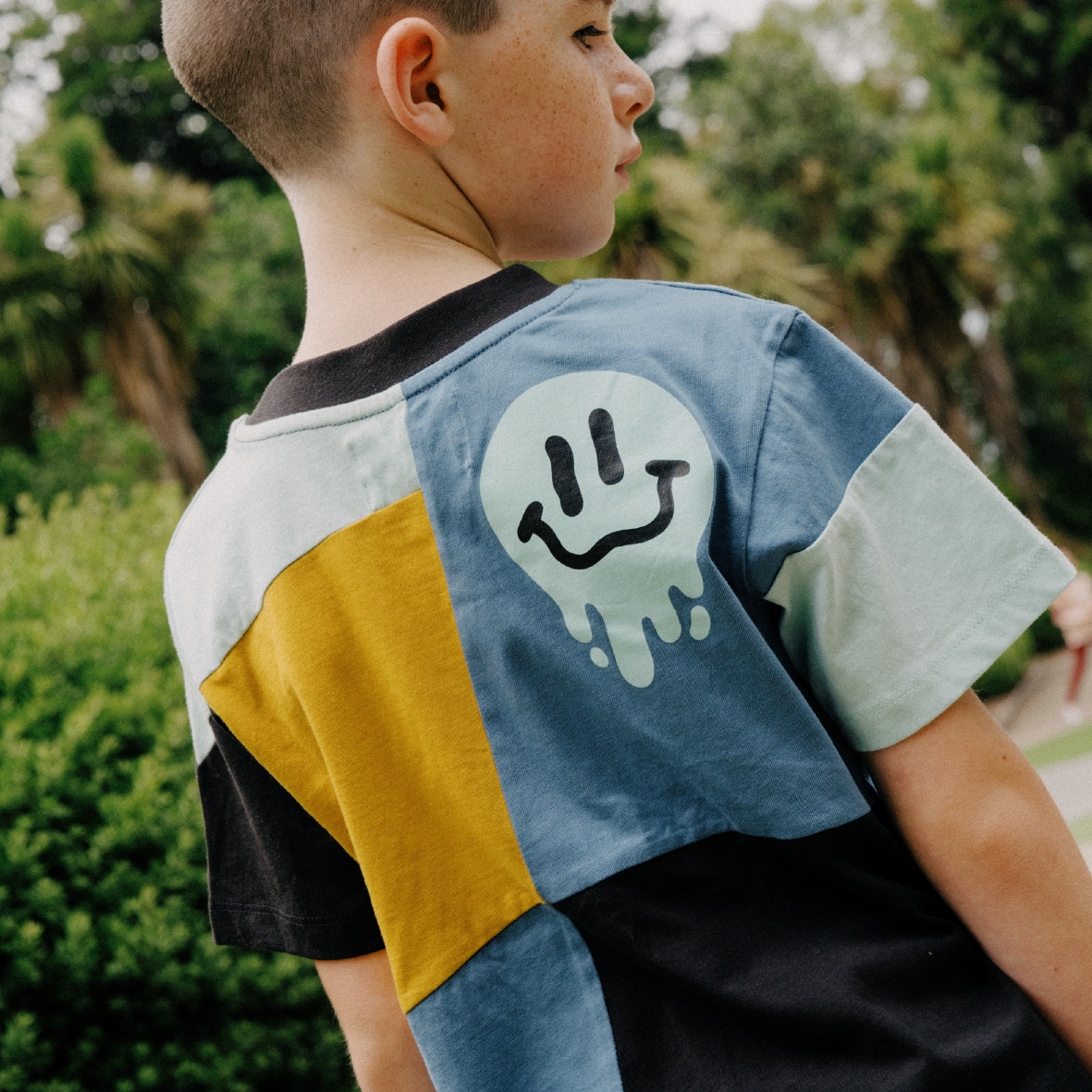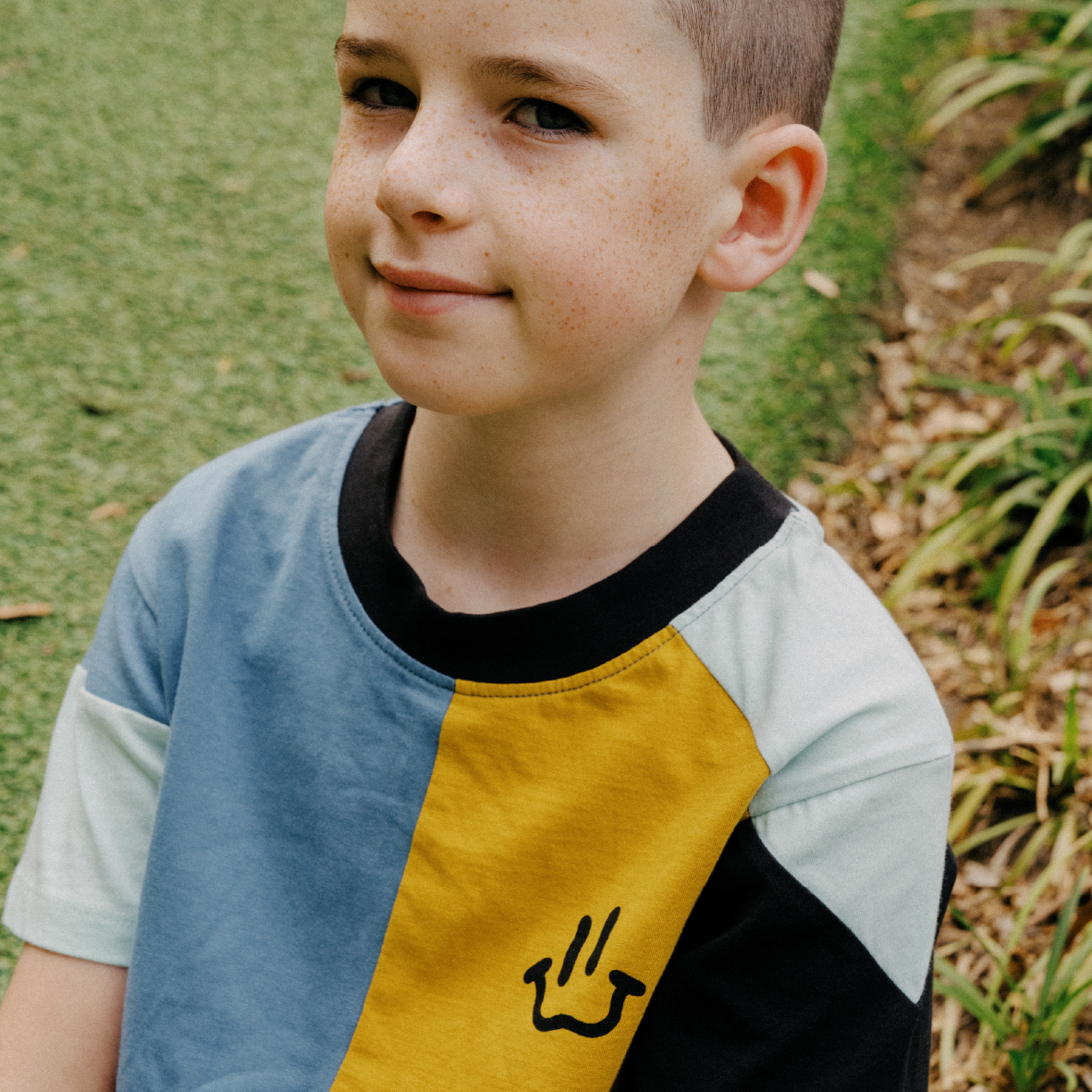 Crafted from soft jersey cotton, this colour block tee features our signature ‘smile’ graphic on the front and back, with a classic straight hem.