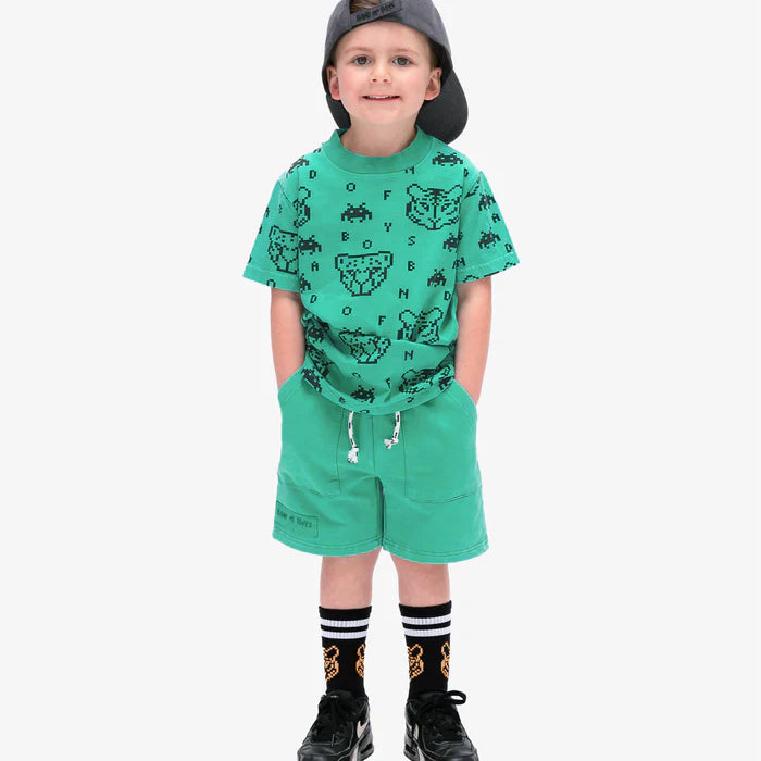 Pair these shorts with the Green Gamer Tee or the Green Stripe Smile Tee for a fresh pop of colour to brighten your day.