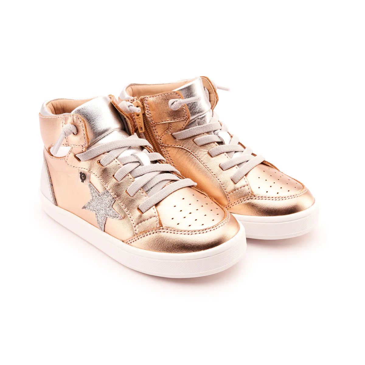 Sporty standout high tops, with dazzling contrast sports stars and contrast metallic.