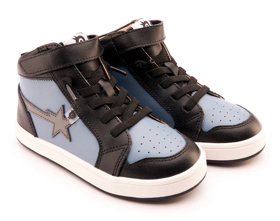 Sporty standout high tops, with a shooting star and two tone sole.