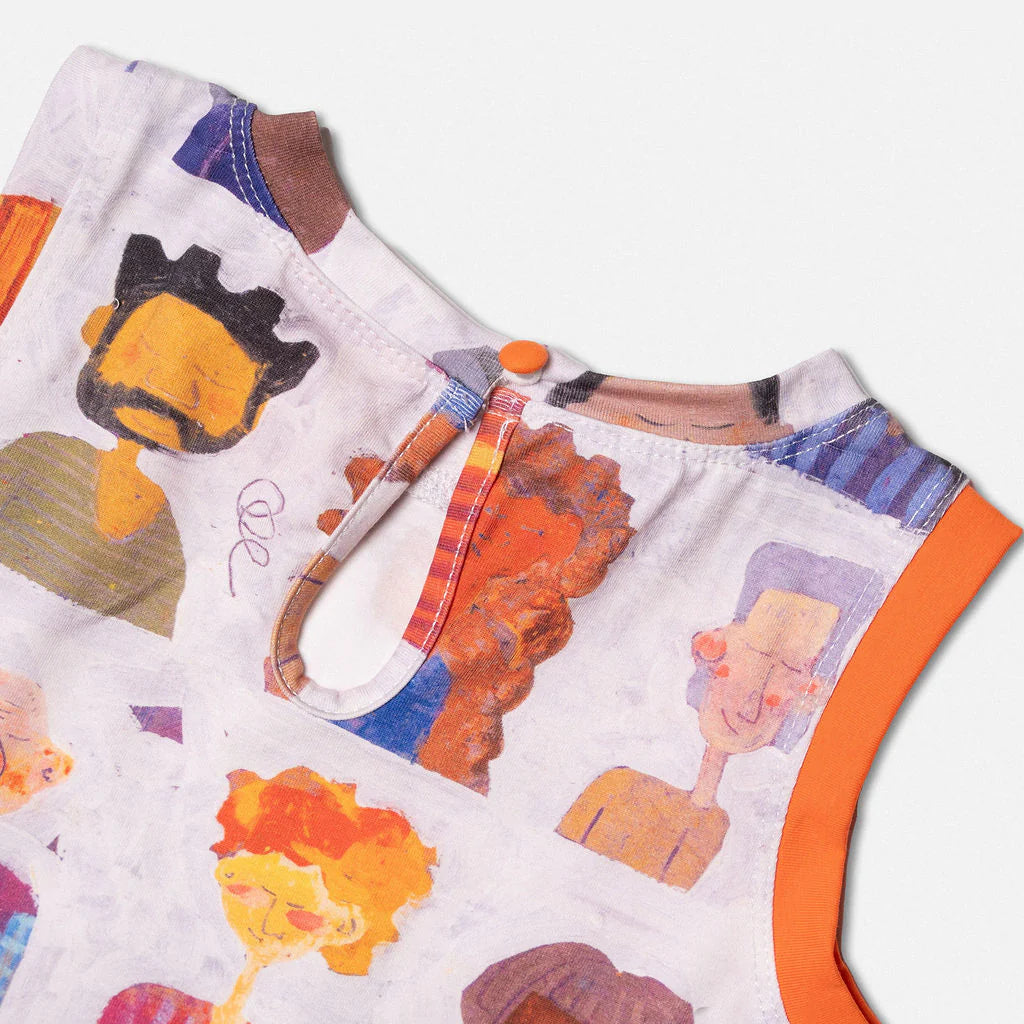 This colourful and creative dress brings your little one’s outfit to life with a fun, vibrant pattern of quirky characters from the 'People of NY' artwork.
