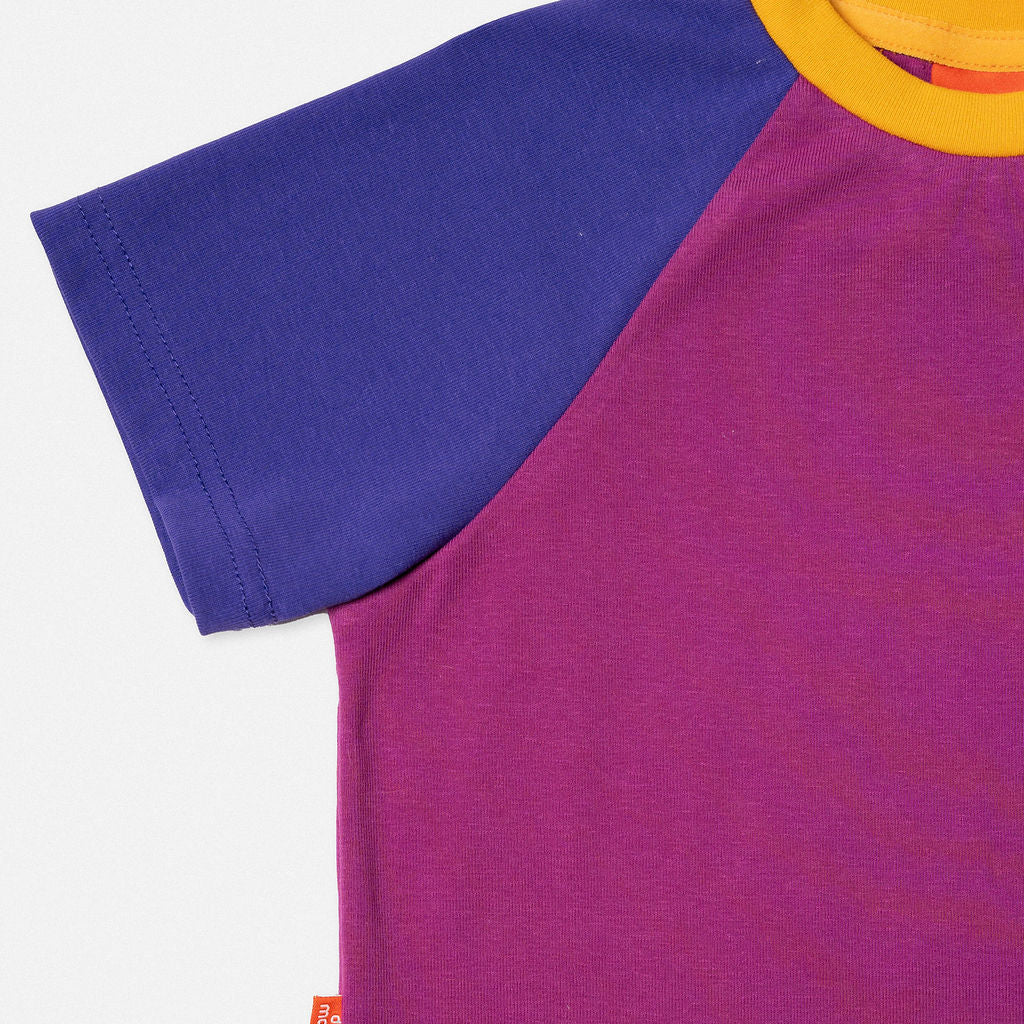Keep it bold and simple with the Purple Raglan T-Shirt, a standout staple for everyday play. Featuring a rich purple body, deep violet raglan sleeves, and a pop of golden yellow at the collar, this tee is all about effortless style with a punch of personality.