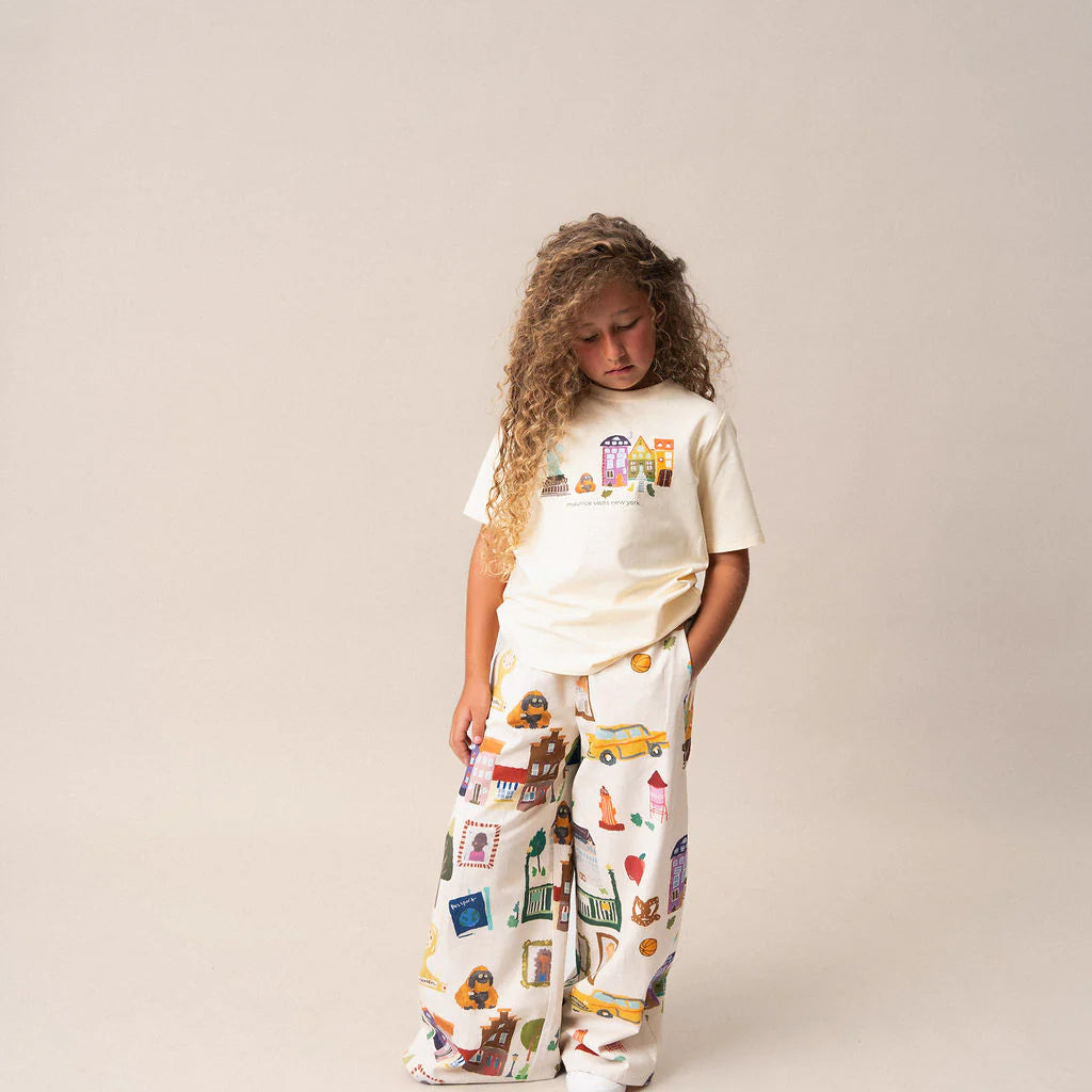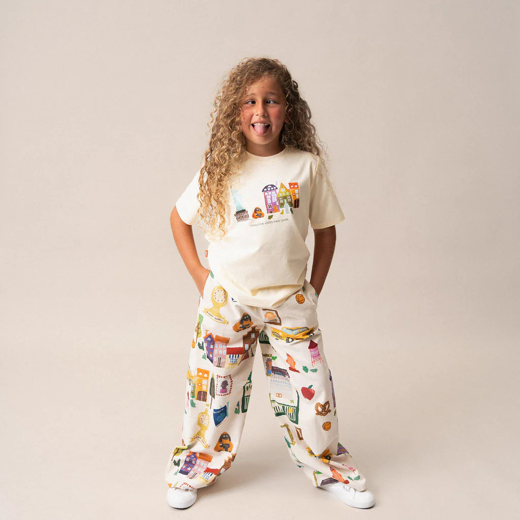 These playful pants bring your little one’s imagination to life with an array of charming illustrations inspired by New York City. Featuring drawings of landmarks, vehicles, and quirky details, these pants are a fun way for your child to explore the world through fashion.