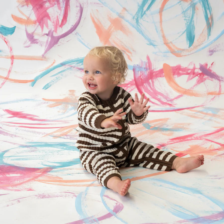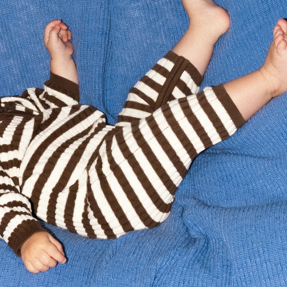 Grown Clothing - Organic Rib Stripe Knit Zipper Jumpsuit - Espresso & Milk