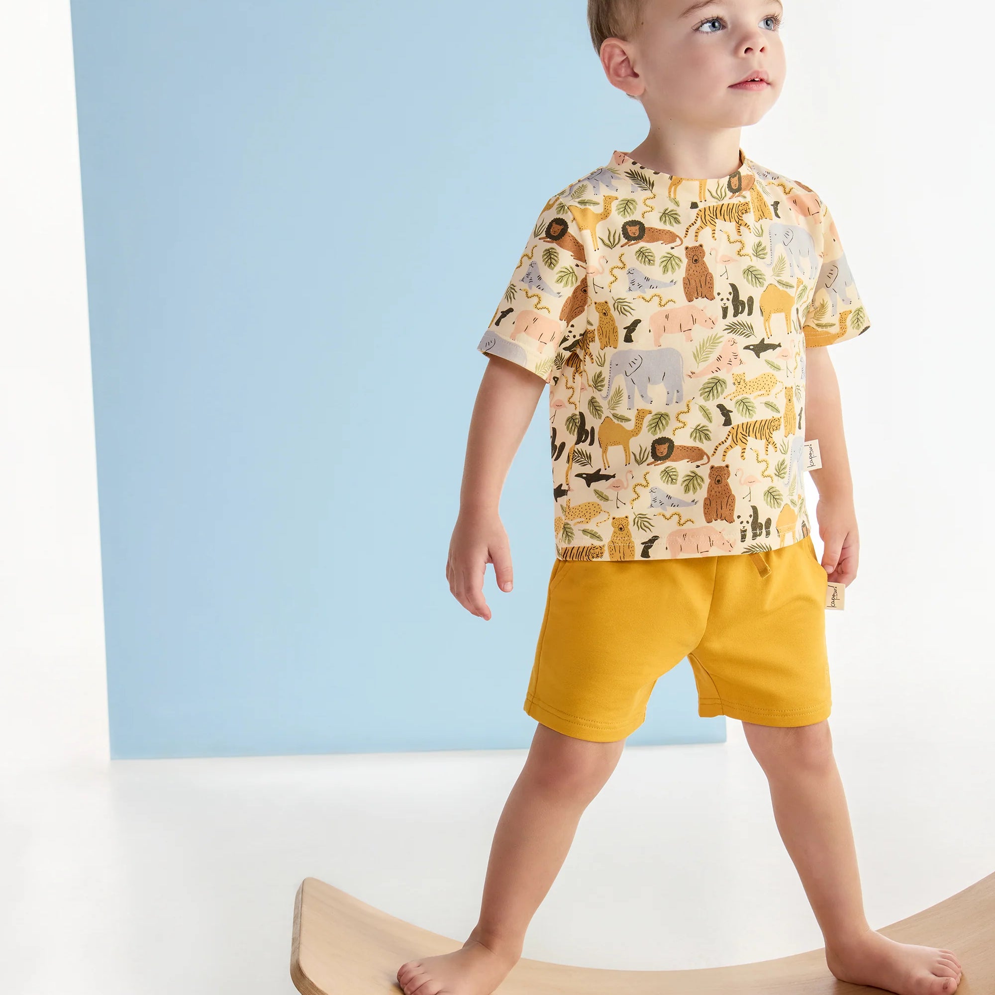 These plain mustard basic shorts are perfect to style with the Animal Kingdom T-shirt.