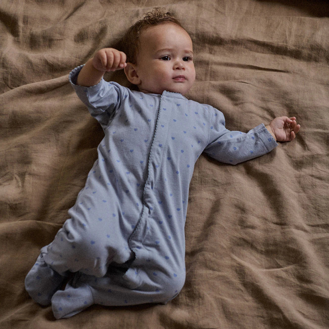 A sweet feminine version of our much loved Stretch and Grow. The Lucy suit is made from soft organic cotton jersey and features beautiful gathering at the top of the sleeves , delicate picot stitching and hidden domes top open.