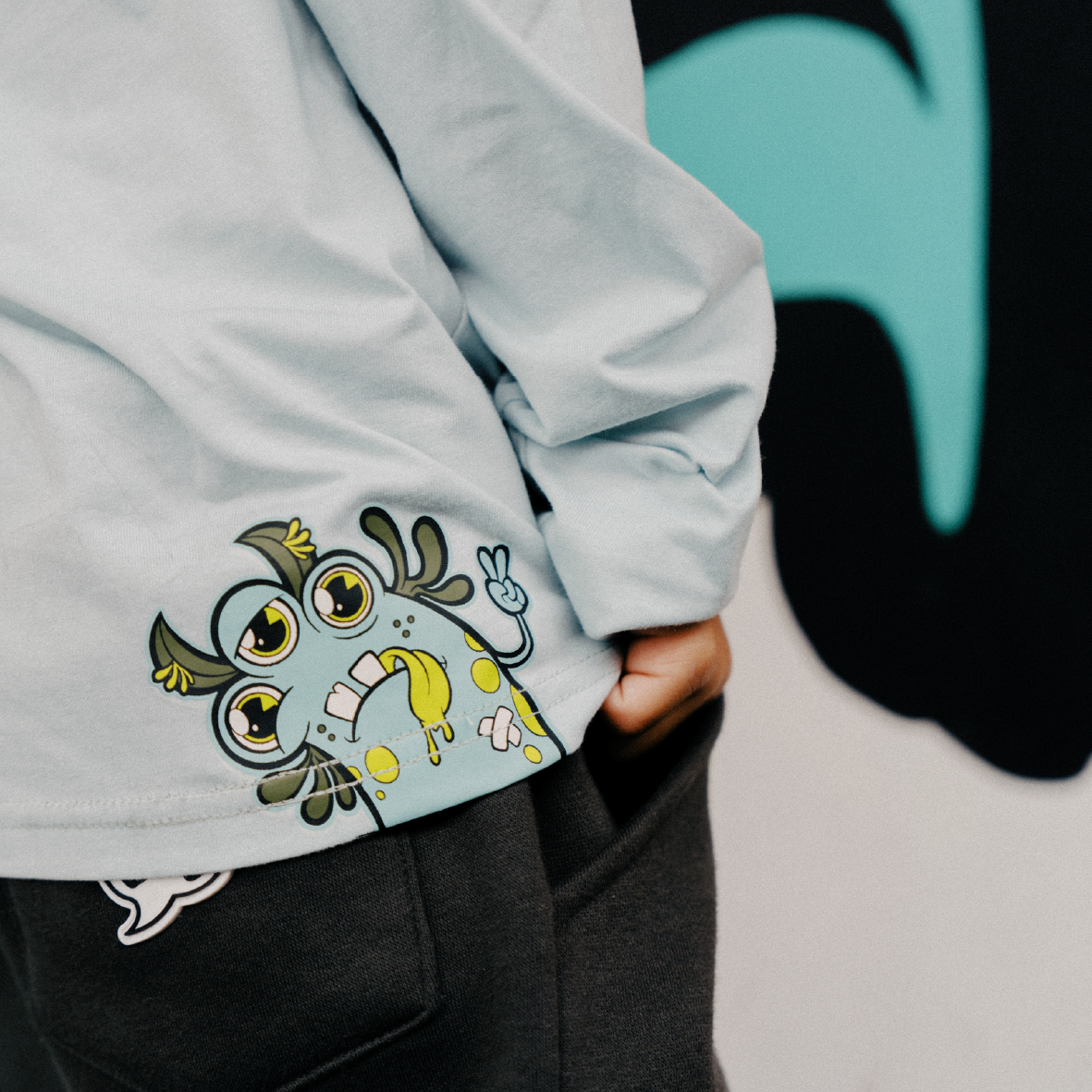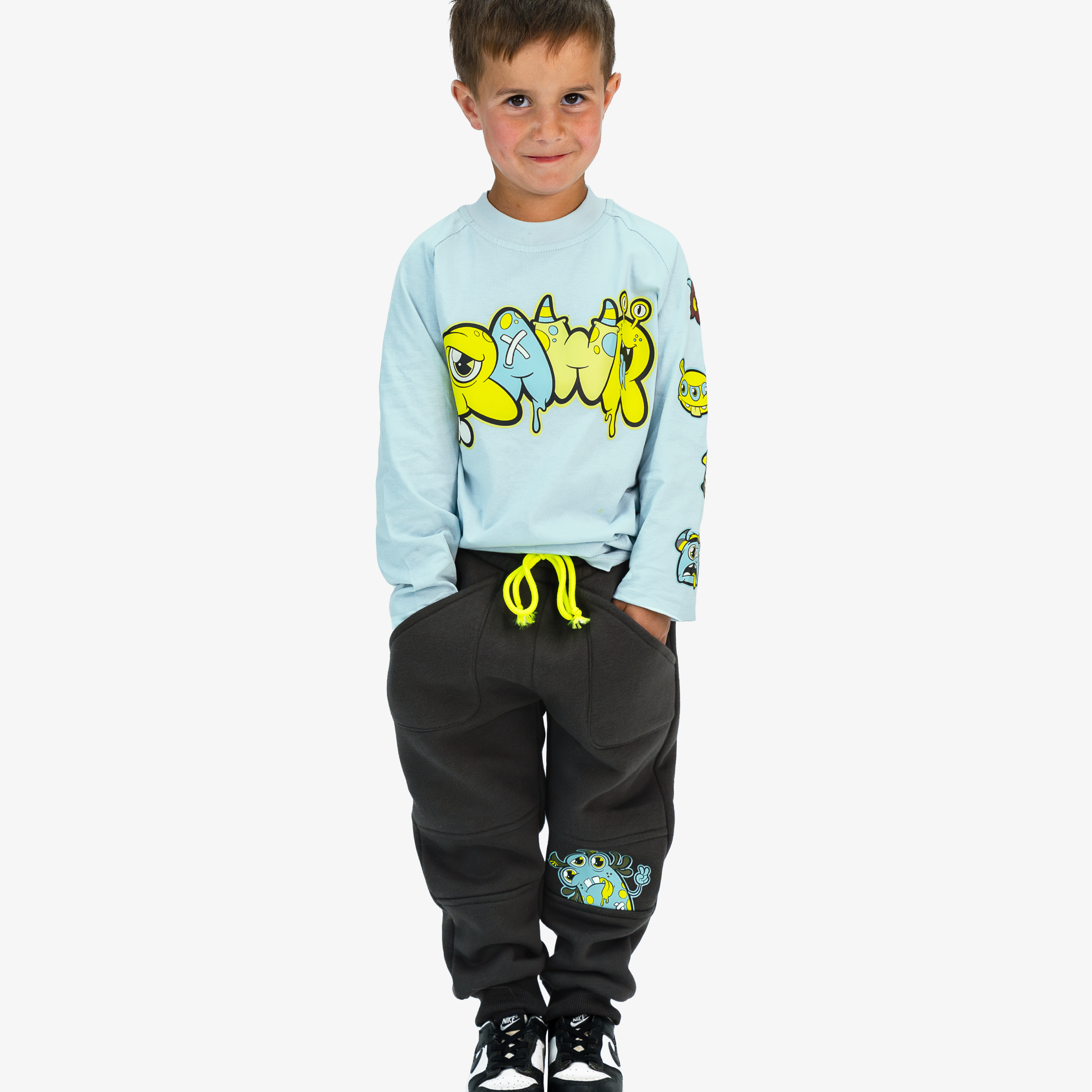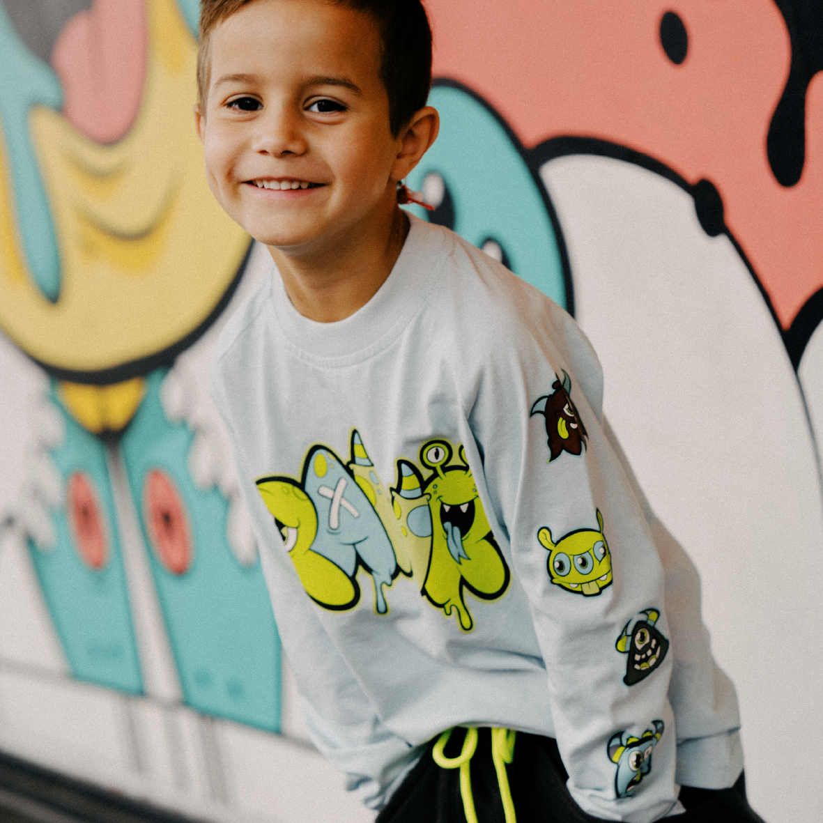 The Band of Boys Light Blue RAWR Tee adds a rad vibe to your winter wardrobe, designed in collaboration with renowned Kiwi artist Enox.
