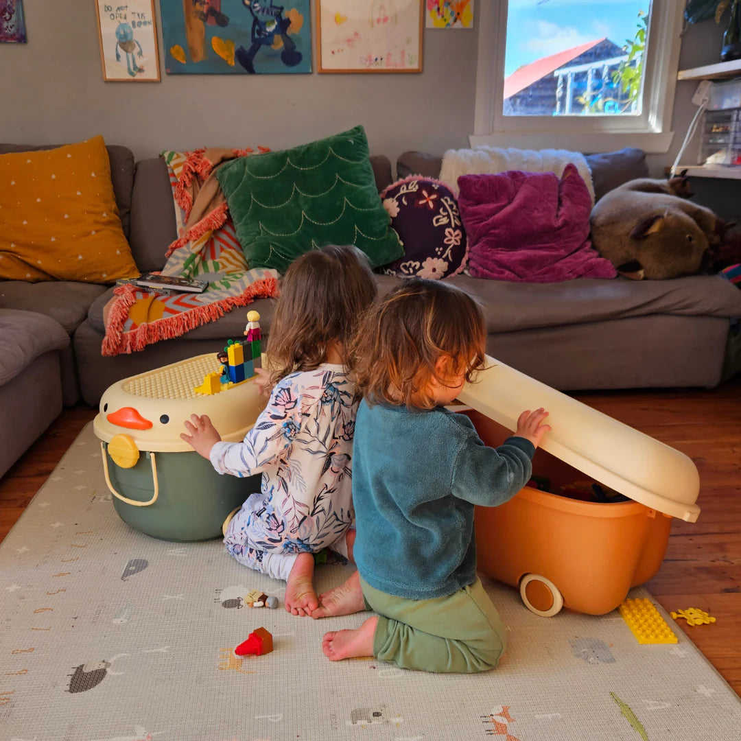 These little storage boxes are so handy and can be rolled around the house depending on the day’s activities.