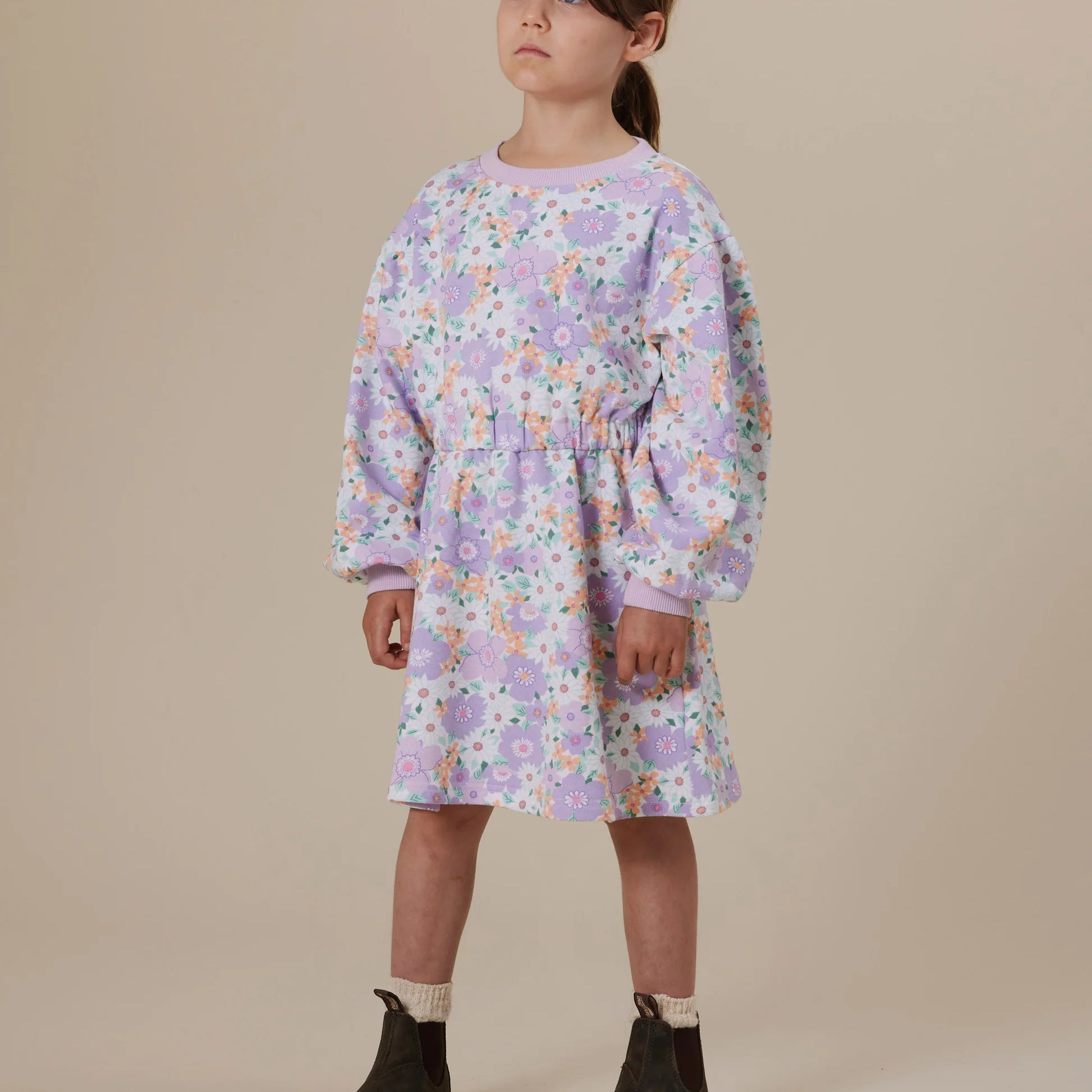A charming floral dress crafted from soft cotton terry, perfect for playful adventures.