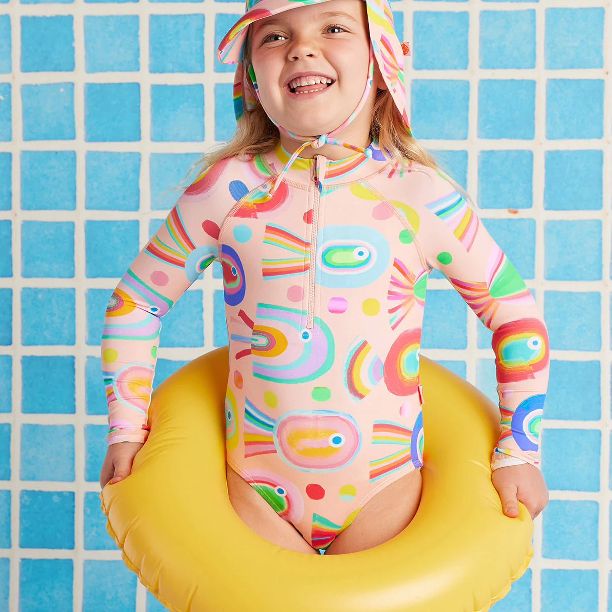 Here we go! Make a splash this Summer with our long sleeve zip kids bather.