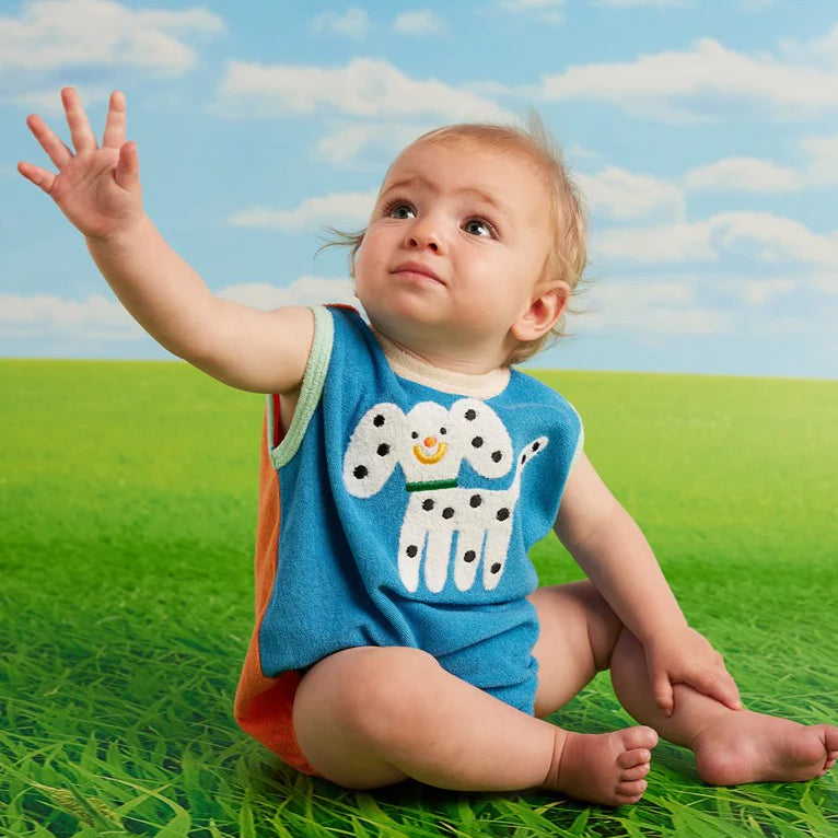 Get ready to dive into days filled with cozy, cute, and playful fun in our baby Puppy Park Terry Singlet Suit. Specially designed for sunny adventures.